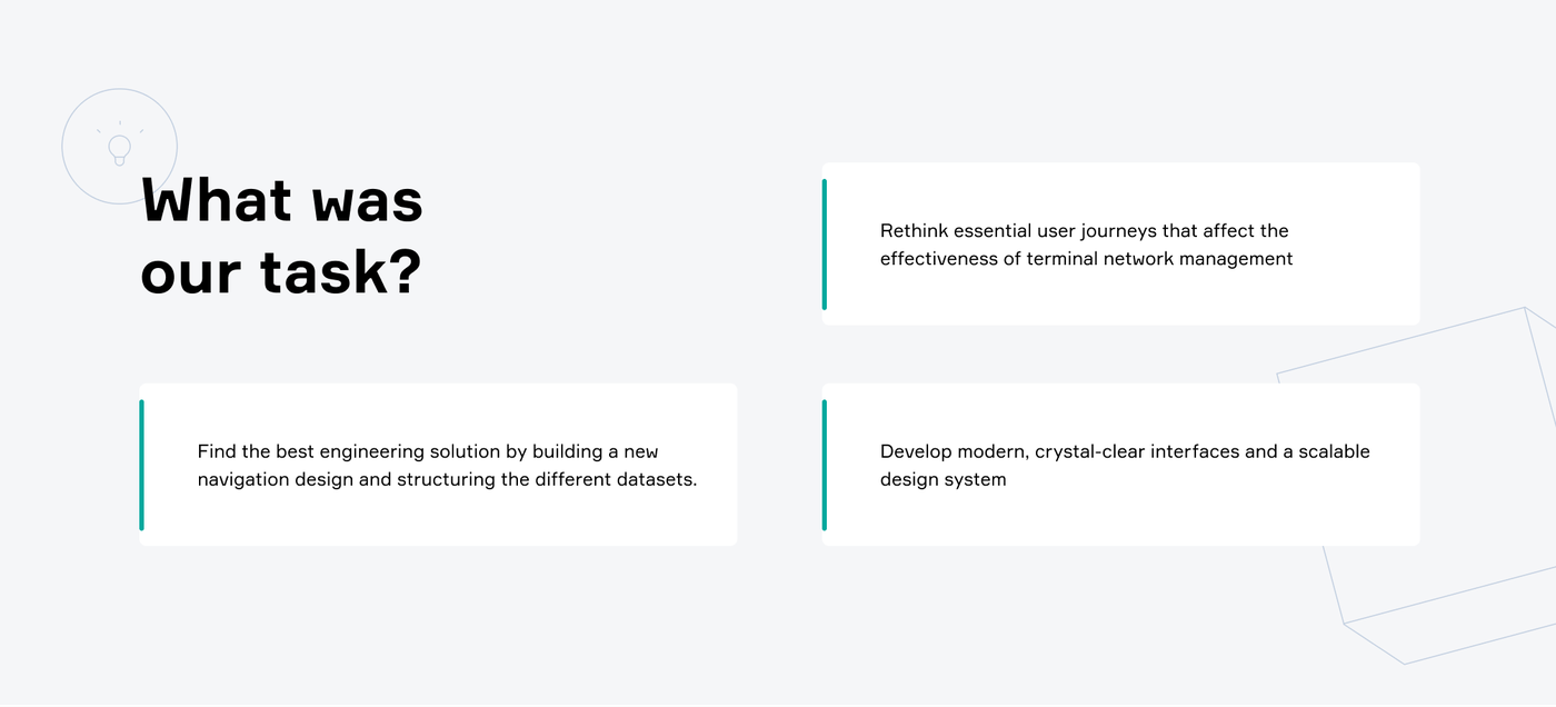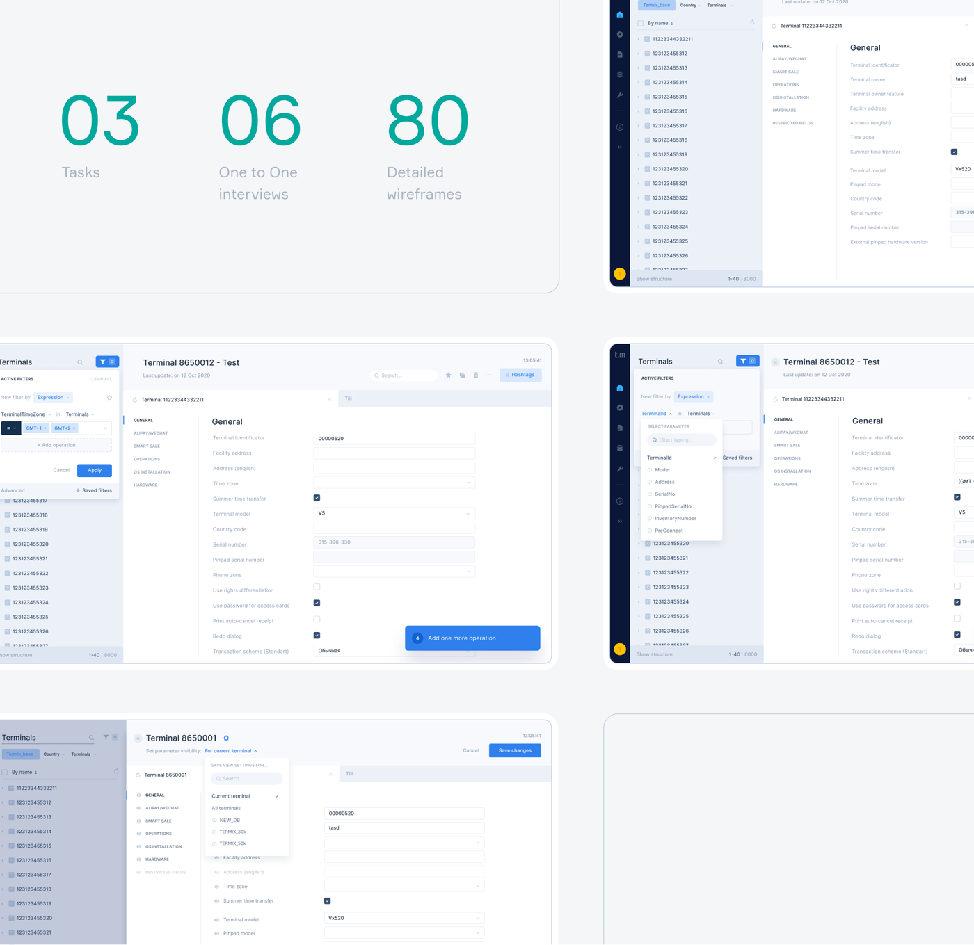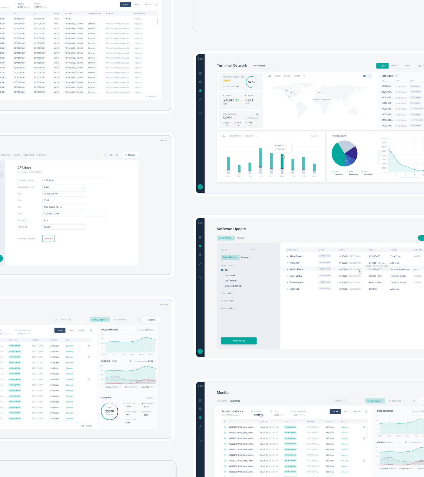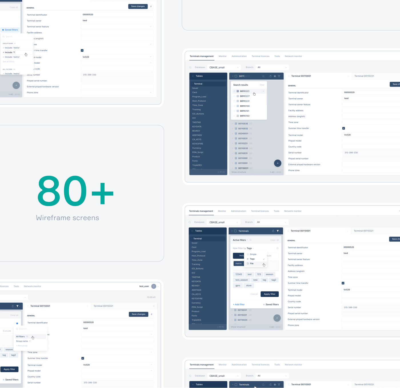 Our team created over 80 screens for the new Termix interface, focusing on making terminal status information easy to scan and problems simple to resolve. Our clients got a comprehensive design system with reusable components that ensures visual consistency throughout the application. This foundation doesn't just keep everything looking cohesive — it also makes it easier to add new features in the future as the product continues to grow and evolve.