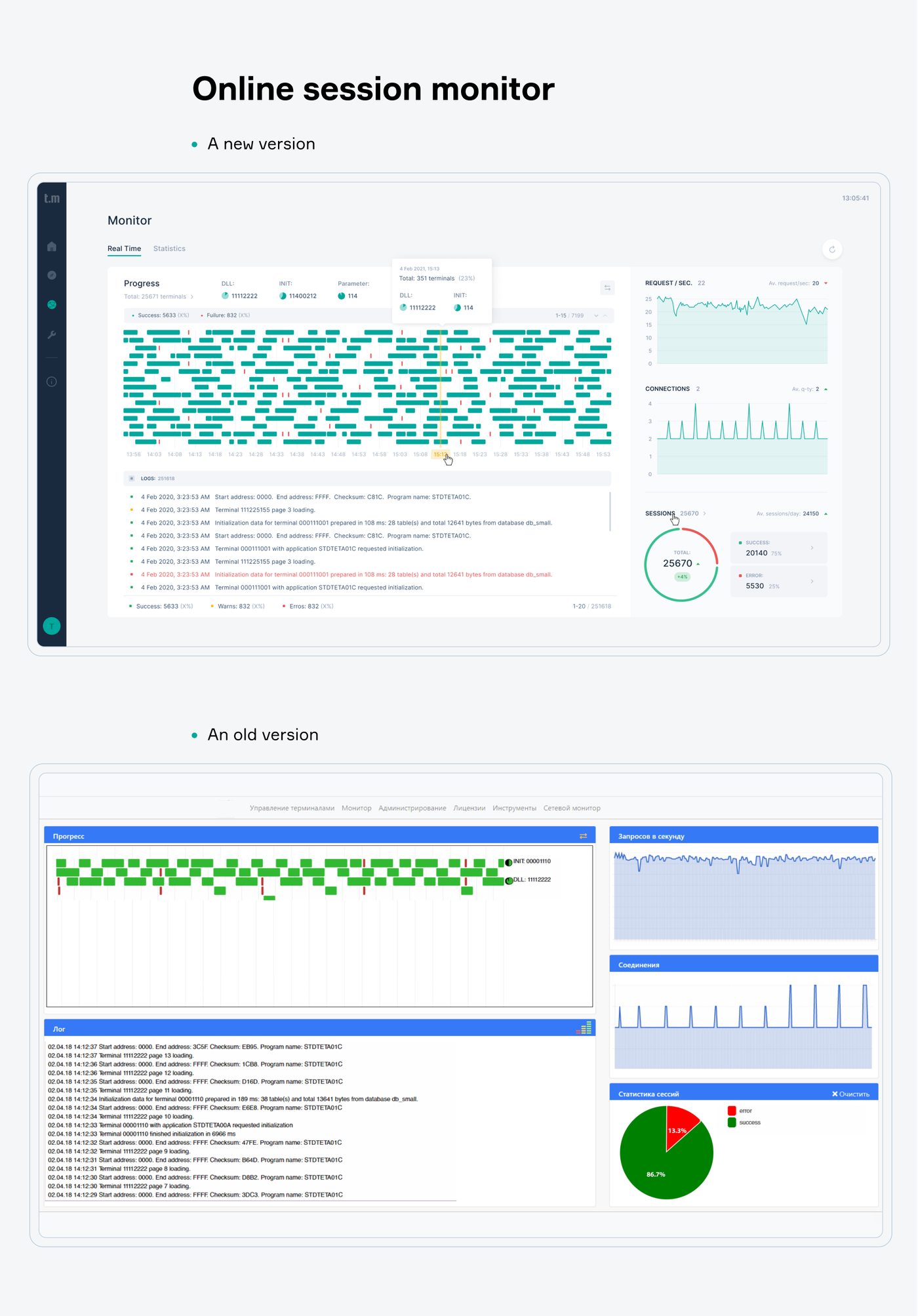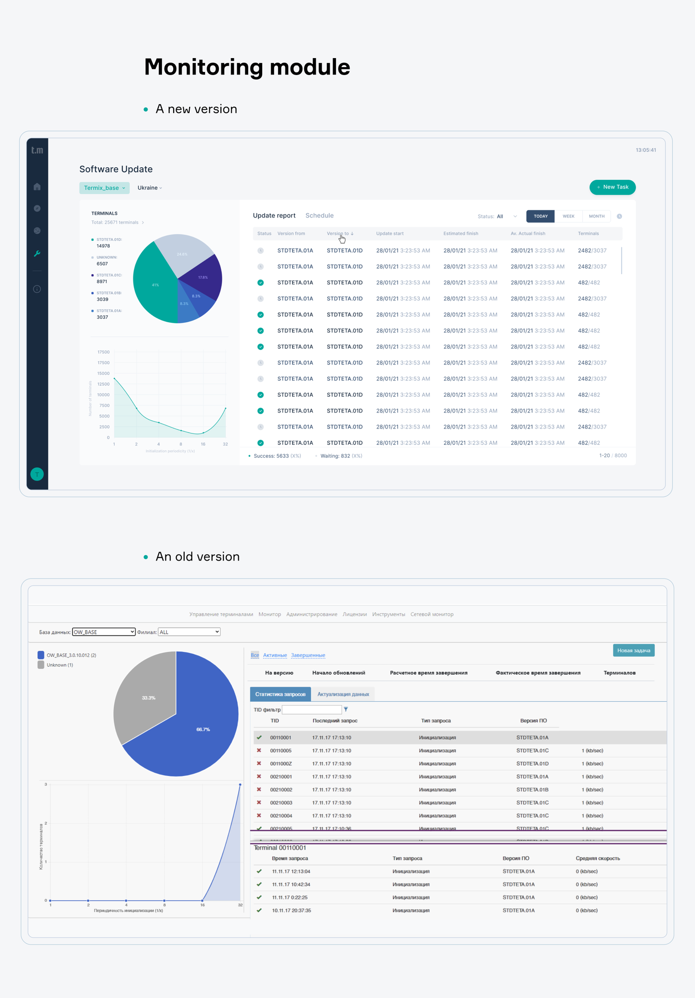 After three months of diligent work with the client, we revised and restructured the product. The UX audit and user testing of the prototype allowed us to make better navigation and data hierarchy management for qualitative monitoring and control of the entire system. We also combined modern interfaces and design elements into a scalable design system. The result is a functional application that is effective for business and stands out from competitors.