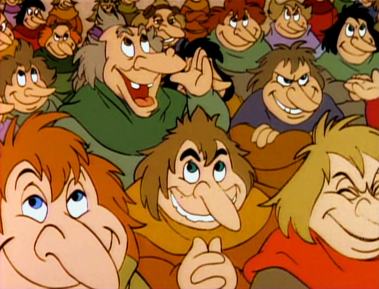 In the episode "Top Gum", once Cubbi and Artie land on the island, they are confronted and captured by the wicked Airiels, who are delighted of getting their hands upon a Gummi Bear. They then take him to see their king, but whenever he claims that they are old friends to the Gummi Bears, the other Airiels snicker and laugh wickedly, especially at the descriptions from the Gummi fairytale book about them having wings.