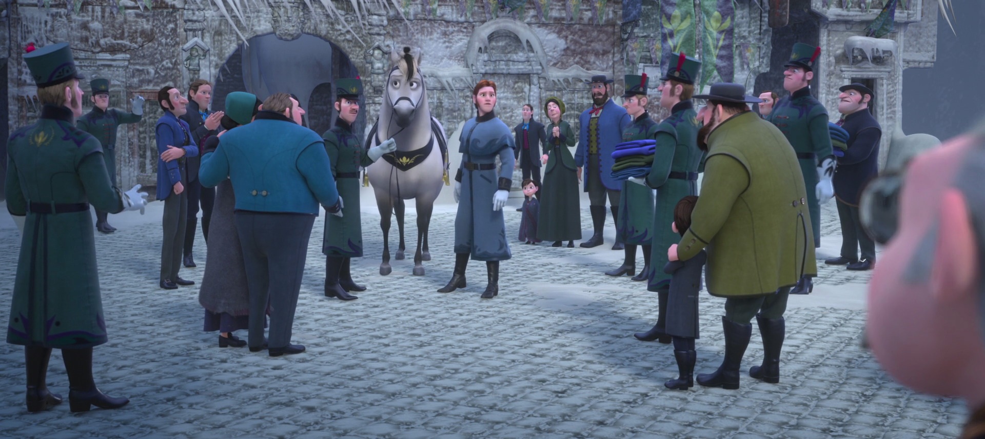 Hans and his army arriving in Elsa's palace.
