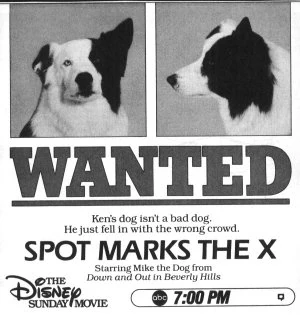 Spot Marks the X is a 1986 Disney Channel Original Movie that starred Mike the Dog (from Down and Out in Beverly Hills ) as Capone/Astro, Barret Oliver (from The Neverending Story, Frankenweenie, D.A.R.Y.L., and Cocoon) as Ken, and Natalie Gregory (from Alice in Wonderland 1985 version, Oliver & Company , and Cranium Command ) as Kathy, who, unlike her role as Alice in the aforementioned 1985 version, is seen with her real hair in this movie, which is brunette. It was produced by Gregory Harrison's production company, The Catalina Production Group, Ltd. in association with Walt Disney Television.