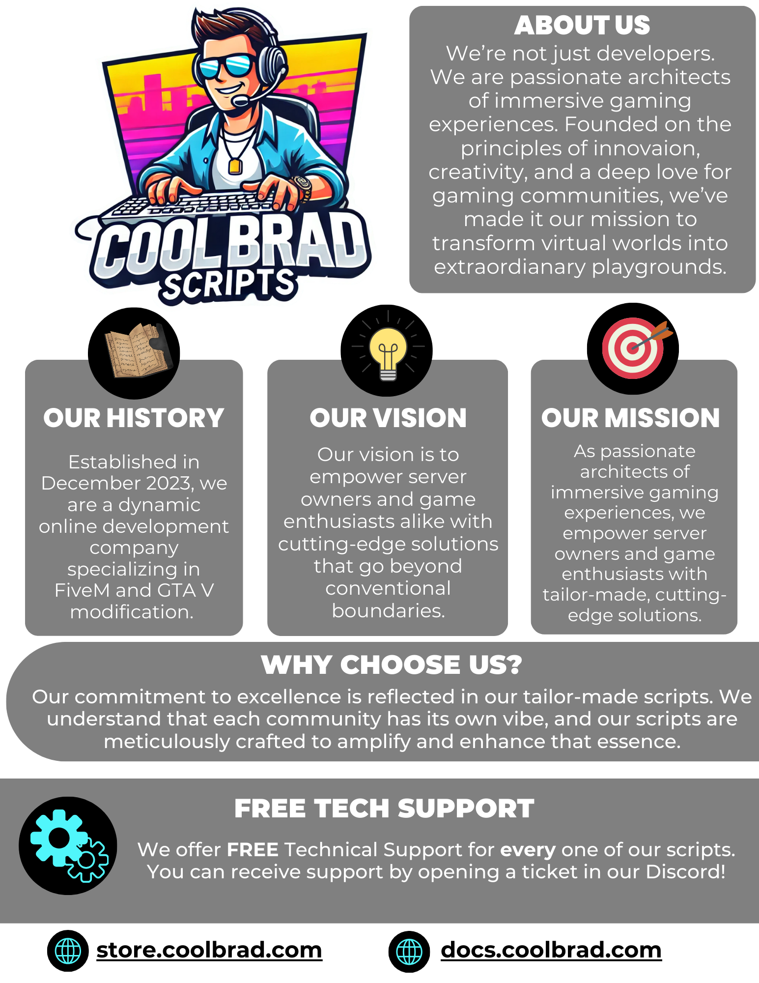 Discover a wide range of premium resources available for purchase on our Tebex Webstore. Enhance your projects with top-quality assets curated for developers.