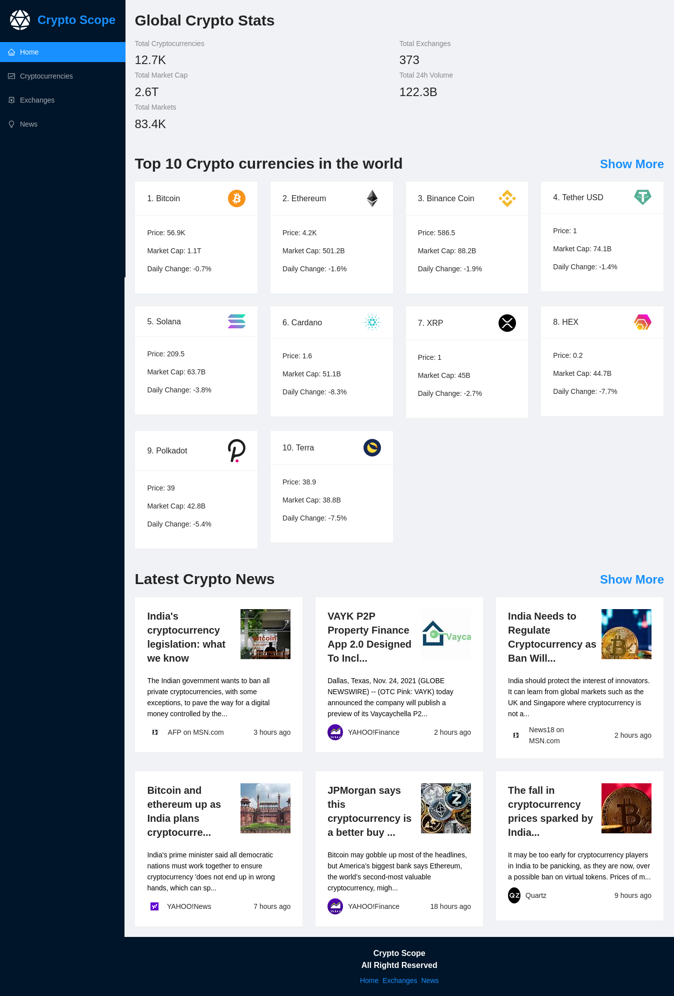 All the information you need about cryptocurrencies in one place. Crypto Scope provides the latest data of the top 100 cryptocurrencies.