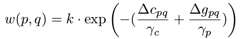 到中心的欧式距离,这样也符合常理,匹配的时候越靠边缘的像素偏差往往越大.而且ASW在比较色彩的时候用的是Lab模型,也就是分别考虑了明度