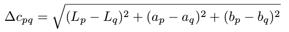 4. 将窗口的像素转为Lab模式,求出两个窗口各个像素的Lab值的欧式距离c(p,q),如公式(4)。