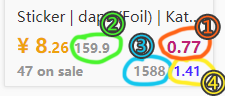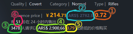 - 显示饰品的挂刀比例1、挂刀后的实际可得2、求购人数3、价格4、比例5等