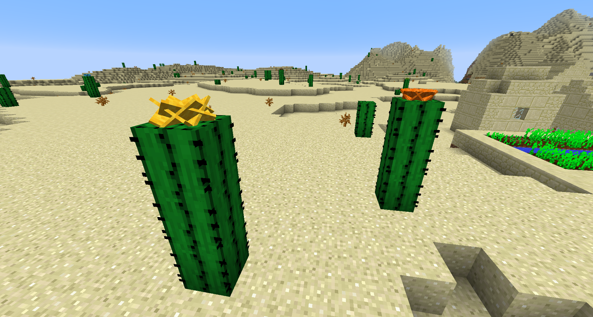 Fiber Flowers in the top of cactus witch drops wool, useful for get colored Wool. The flowers grow when the cactus finishes growing.