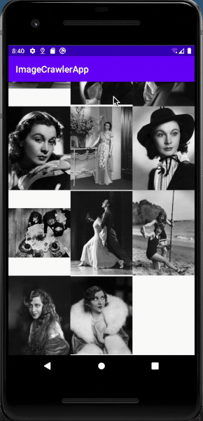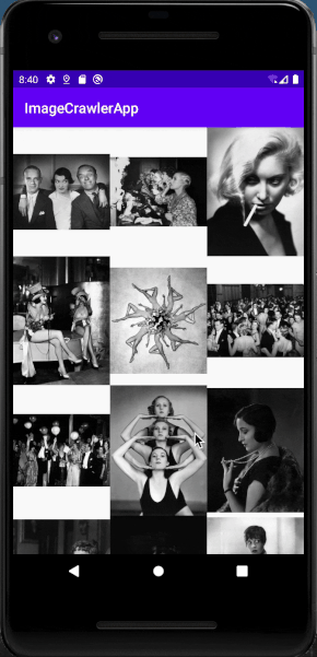 성능비교를 위해 본격적인 구현에 앞서 Glide로 먼저 이미지를 띄워보았음. 실행 결과, 이미지를 처음 받아오고 스크롤 하면 매끄럽고 빠르게 이미지가 로드되는 것을 확인할 수 있었음. Glide 자체가 메모리캐시와 디스크캐시를 처리해주기 때문에 볼 수 있는 결과였음.