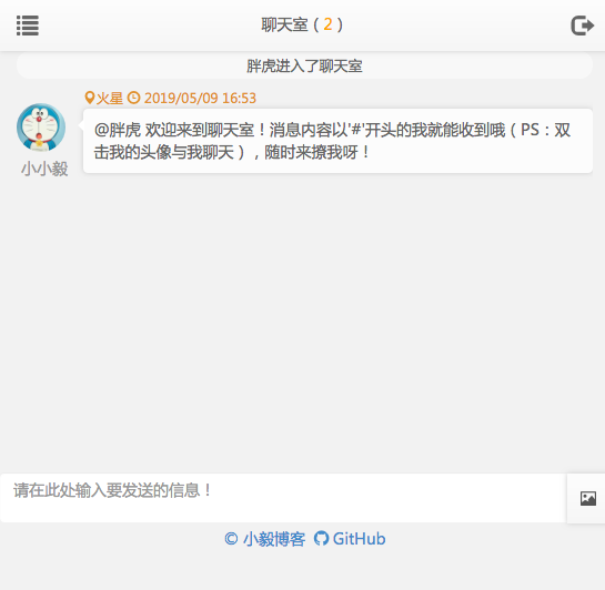 String ROBOT_WELCOME_MESSAGE = "@%s 欢迎来到聊天室!消息内容以'#'开头的我就能收到哦(PS:双击我的头像与我聊天)," +