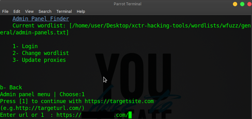 Press 2 to change wordlist and login.