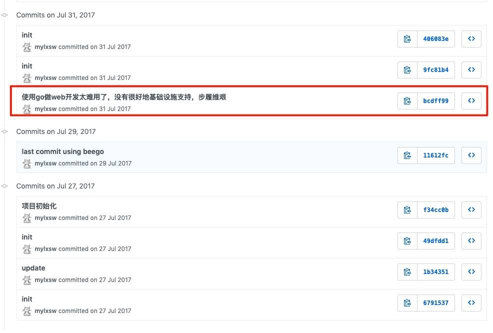 起初打算用 Go 语言来开发,但是没过几天发现使用 Golang 来做 Web 项目开发效率太低(快速开发效率,并非指性能),很多常用的功能都需要自己去实现,遂放弃使用 Golang,转而使用 PHP 的 Laravel 框架来开发。所以虽然项目创建的时间为 2017年7月27日,但是实际上真正开始的时间应该算是 2017年7月31日。