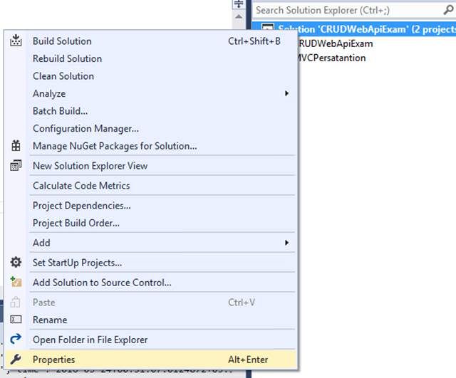 - 右键解决方案,选择属性(Properties)。