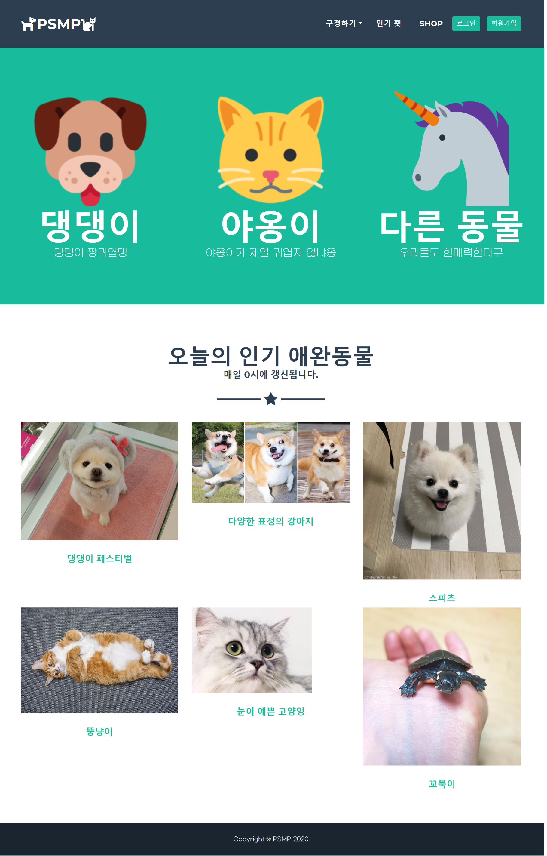 커뮤니티+쇼핑몰 프로젝트입니다. 강아지나 산책시키기 힘든 고양이와 포유류,조류,파충류 등을 다른 사람들이 보고 같이 예뻐해줬으면 하지만 그렇기 힘든 사람들을 위해 만들어지고 있습니다.
