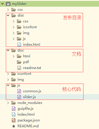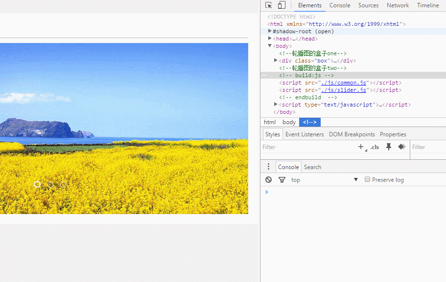 - 编写JavaScript核心代码,包括common.js和myslider.js。
