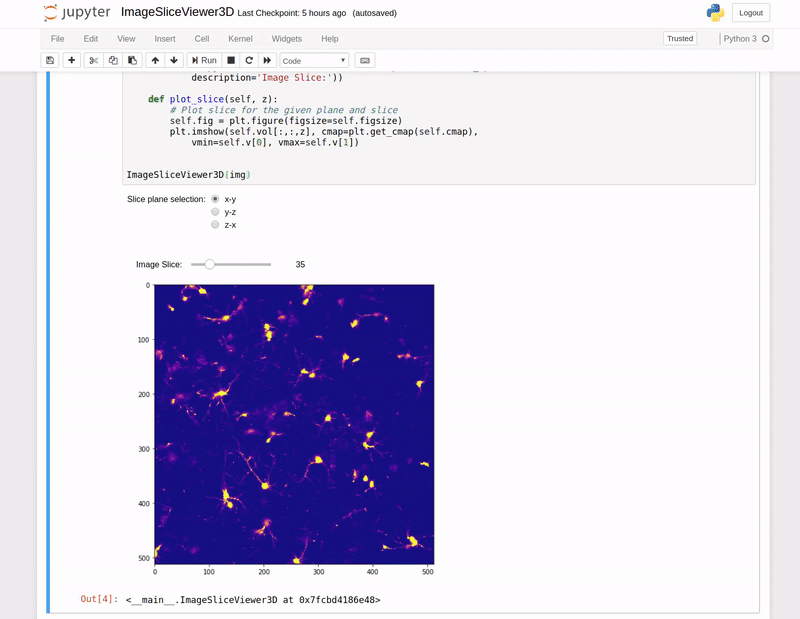 Please note ImageSliceViewer3D requires numpy, matplotlib and ipywidgets.