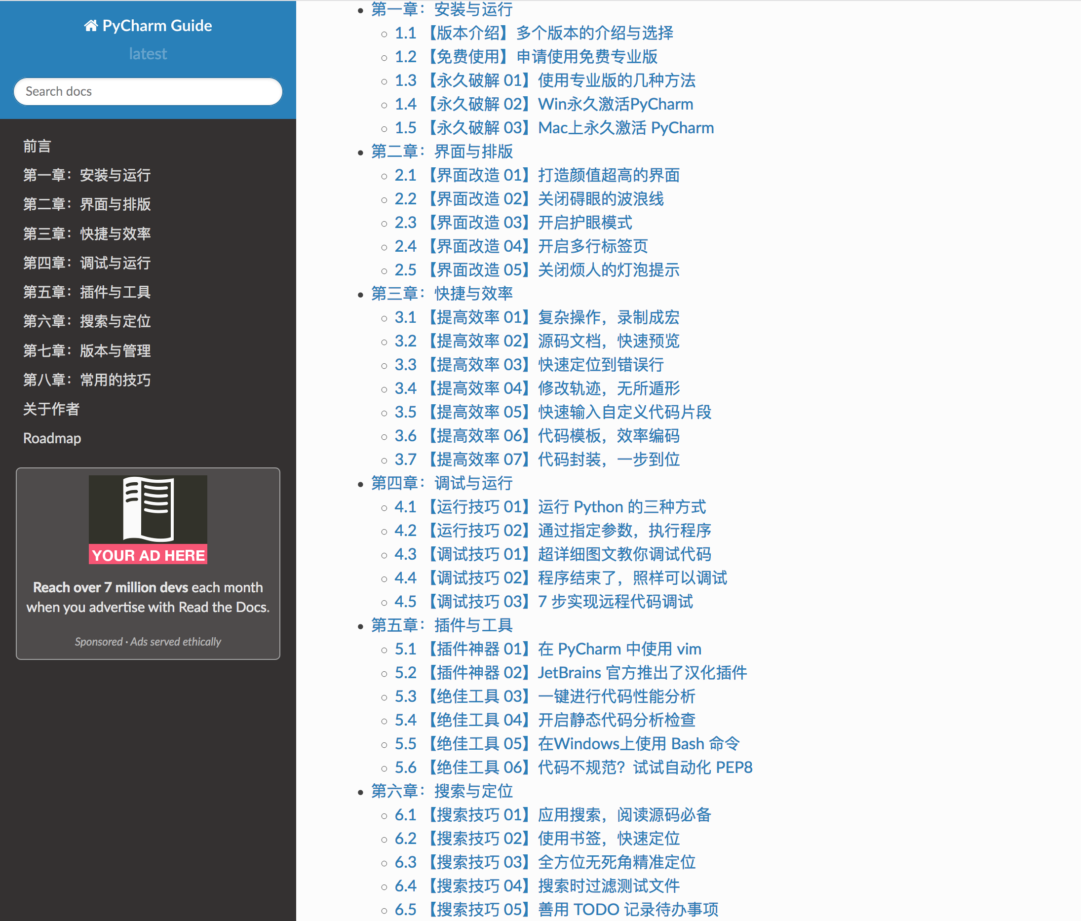 Python 黑魔法指南》 是我当前正在持续更新的电子书,除此之外,我也在写一本关于 PyCharm 的电子书《PyCharm 中文指南》,已经写了不少内容。