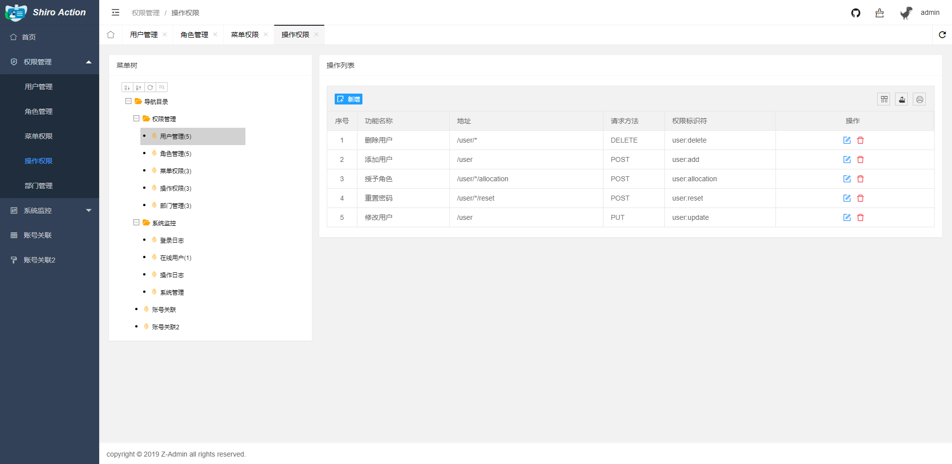 - 支持根据同 URL, 不同 HTTP Method 来校验权限, 更支持 restful 场景.