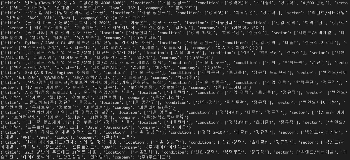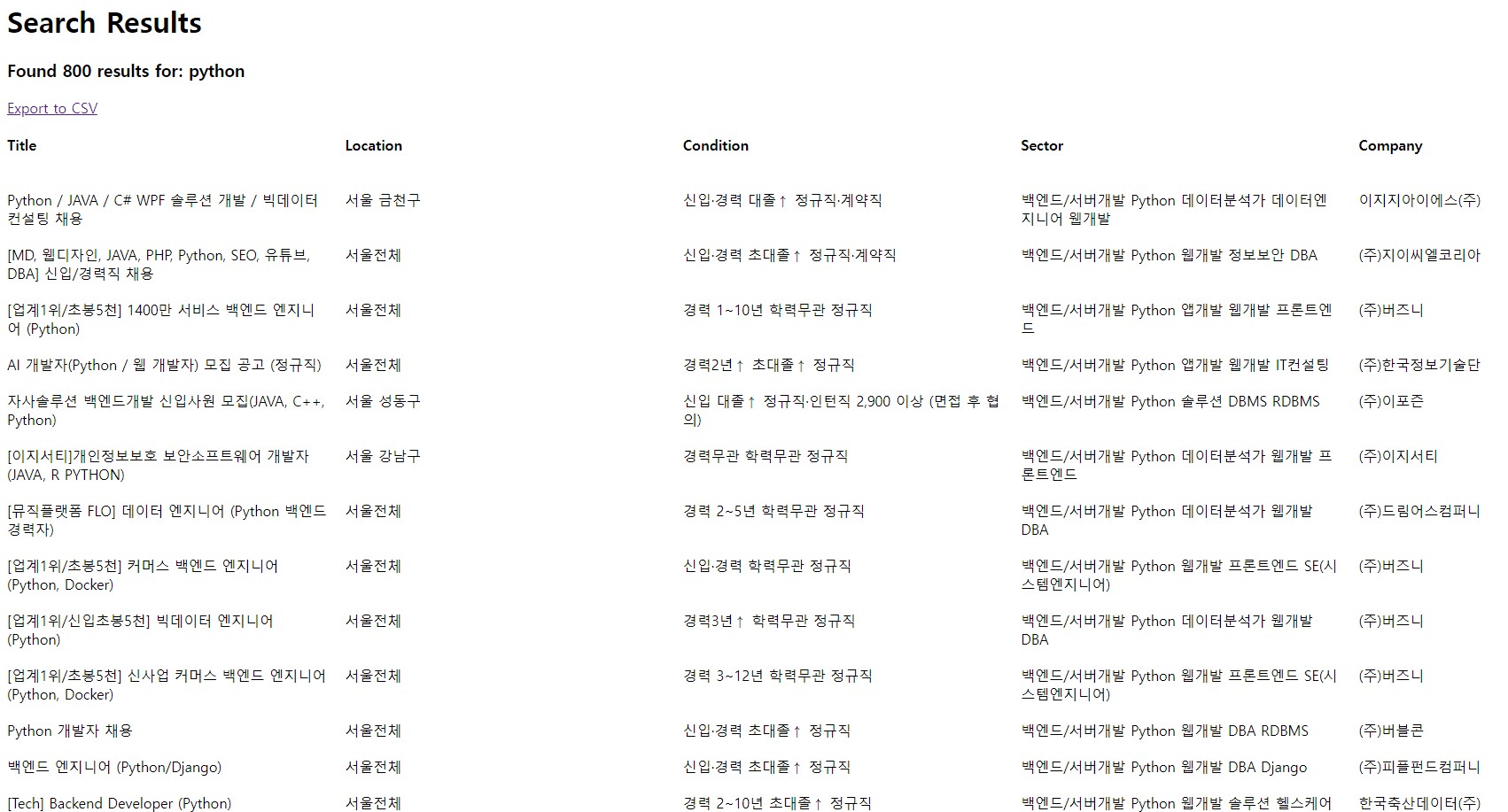 Nomad코더의 강의를 듣고 만든 프로젝트 입니다. 사람인 사이트의 서버/백엔드 분야를 웹 크롤링 해봤습니다.