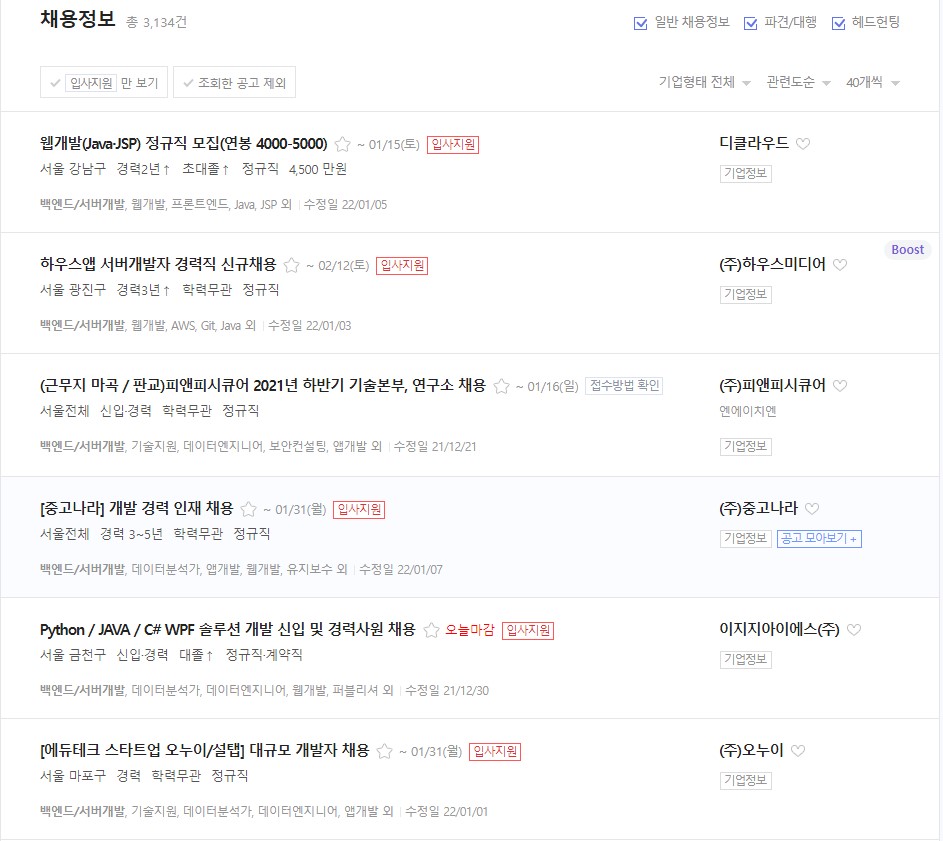사람인 사이트를 기반으로 Flask를 이용한 웹 서비스를 만들어 보았습니다.