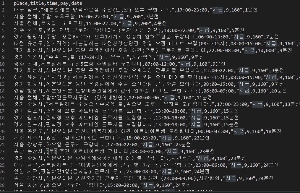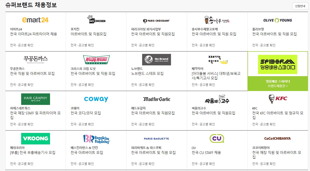 알바천국 슈퍼브랜드 채용정보에 대한 웹 크롤링을 추가하였습니다.