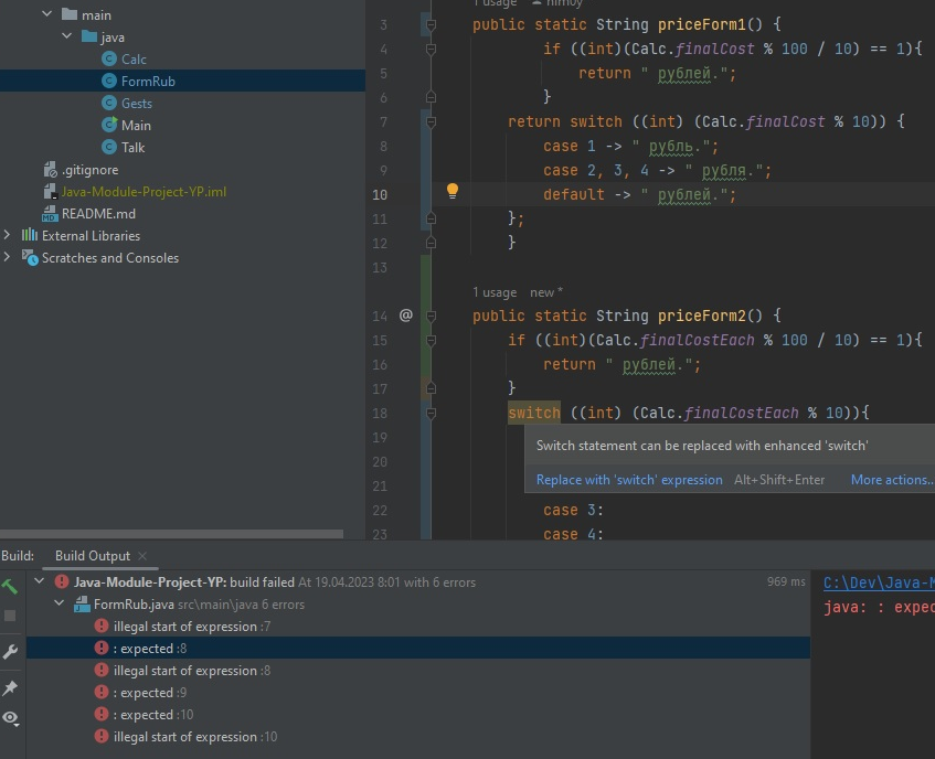 Совет на будущее: Если поставить курсор на switch, то можно увидеть фонарик желтый. Он подскажет улучшения кода