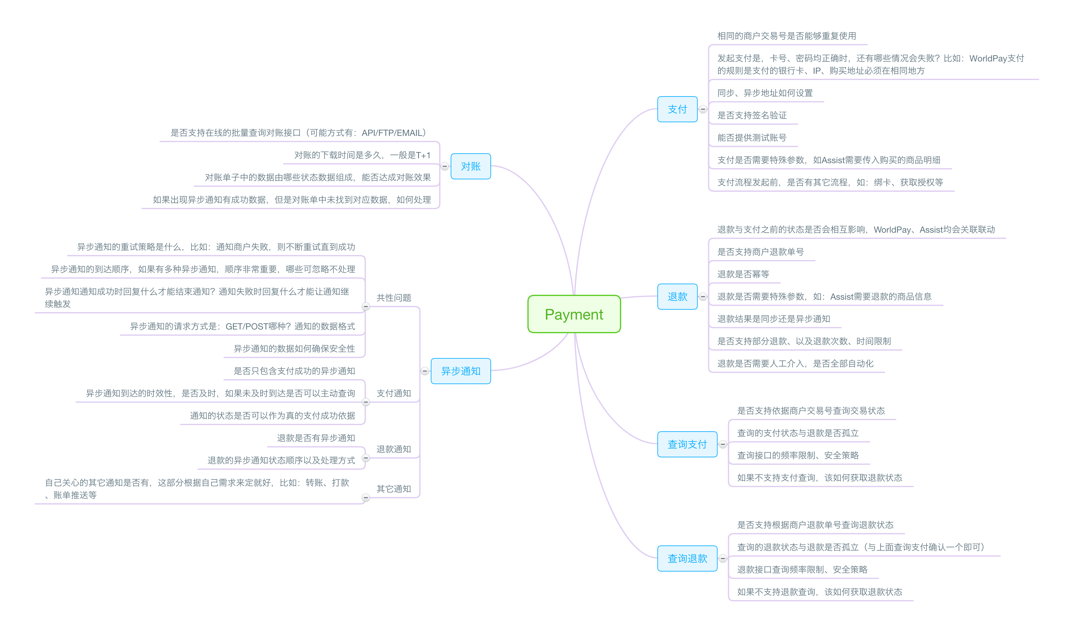 最后,赠送大家一副脑图,这是接入一家支付时必须弄清楚的问题清单