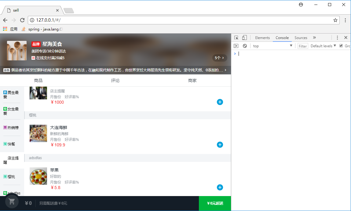 然后重新访问:http://sell.springboot.cn,就可以看到前端效果了。