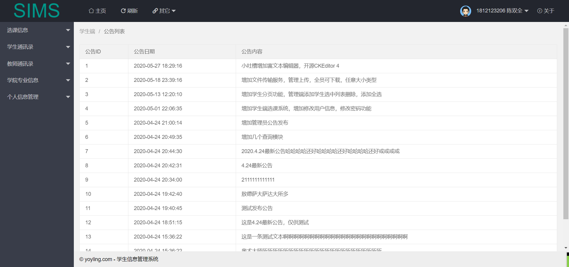 面向教学信息以及学生及老师的信息管理要求,学生信息管理系统应运而生,它能提供线上的信息管理,从而高效的处理数据。方便方便对学生及老师各类数据进行大数据分析。
