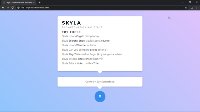 Skyla is a Voice Recognition automation assistant | Script Handler that runs on #node.js using #puppeteer.