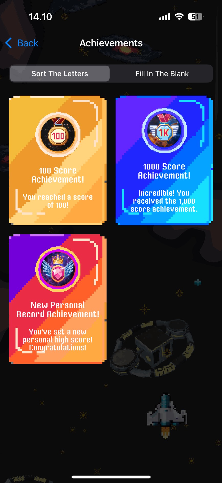 - Shoot The Letter (STL): Pilot a spaceship and shoot down the correct letters in sequence to destroy incoming asteroid words.