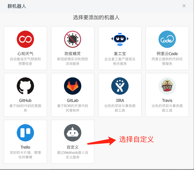 2、选择群机器人中的自定义