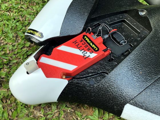 The Parrot Disco comes with internal storage of 32 GB, which allows video recording (in 1080p) of less than 2.5 hours. This modification enables video/photo recording to a USB thumb-drive attached to the Disco's CHUCK.