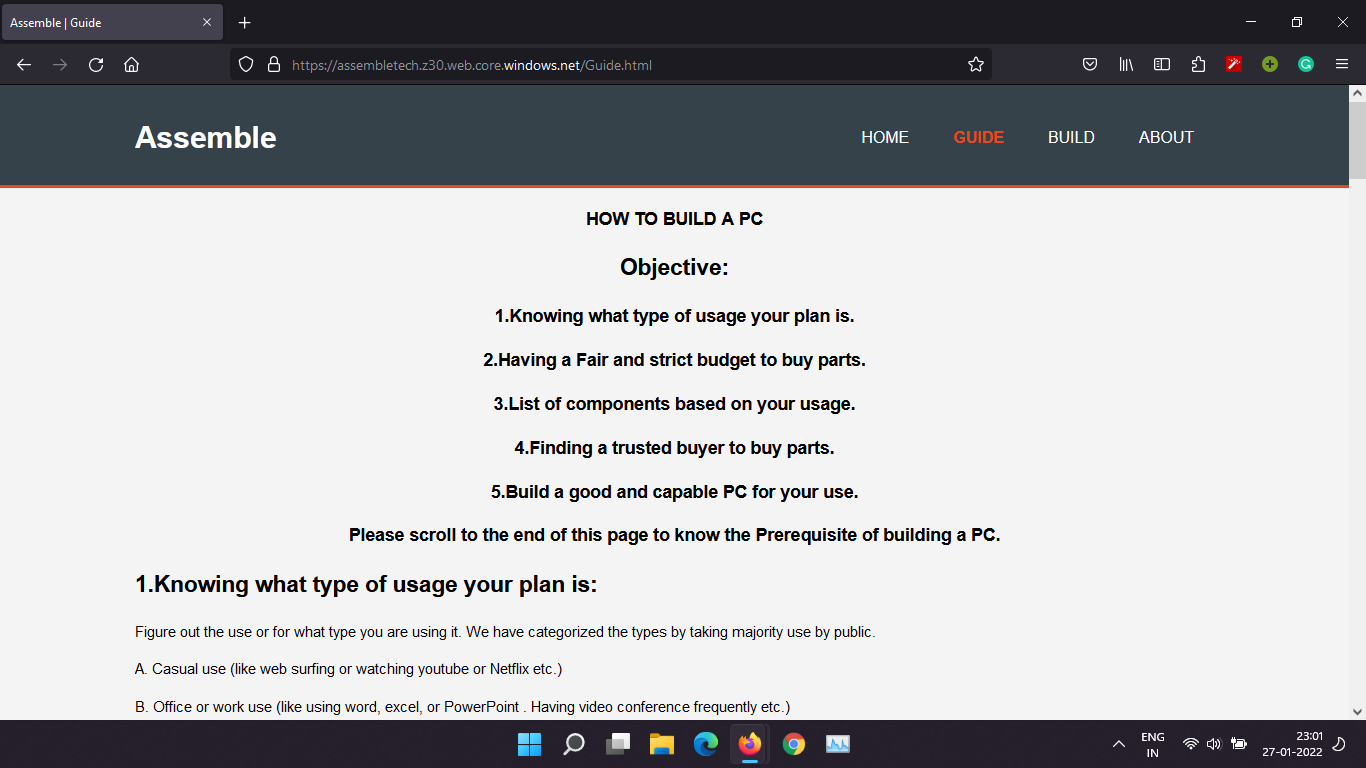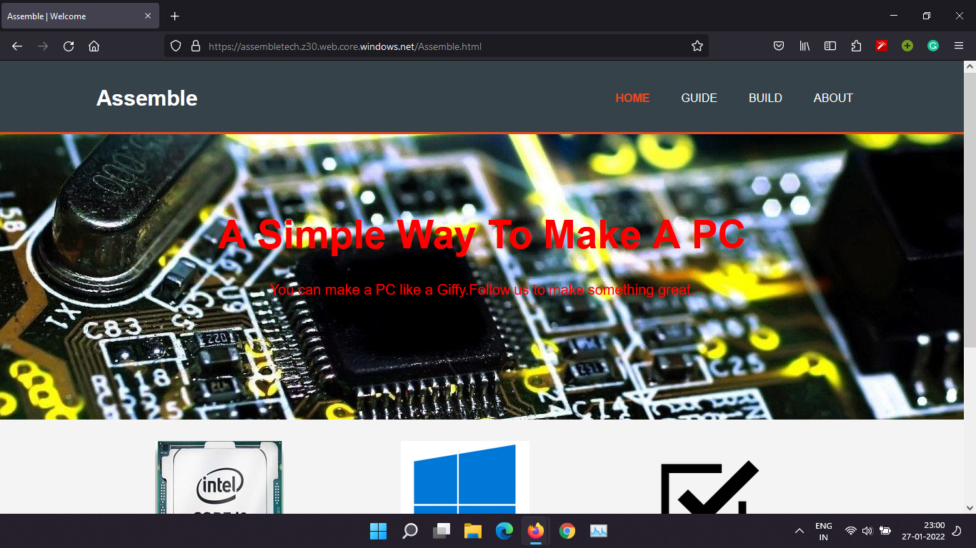 The project is made to solve the complexity of building a computer. The website is designed in such a way that it makes the user to follow the steps in right way and have a hassel free experience in building his own computer. The website is build using HTML, CSS, JavaScript and also using Microsoft Azure platform to store the website and make it available to the world by hosting and storing the main project files in the azure platform. Azure platform provides with services such as storage accounts to store a certain project and get that particular project to go online by networking services. Azure makes hosting, maintainance and future upgrades very easy.