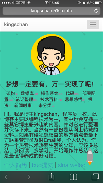 写作找个好的平台还是挺重要的,最初我是在QQ空间发表日志,后来发现好友都不是同一个圈子的。另个QQ空间 对附件,代码这方面的支持不好。而且交流的圈子也比较有限。不利于交流和传播。后来我在网上找了一下其它博客平台,如新浪用了几个月发现功能及界面太丑,发表代码这个是硬伤。后来又加入iteye,CSDN 代码的问题解决了,但是操作不便利,界面太丑,当然iteye的自定义个性域名,我很喜欢。到最后的github 我突然有个想法从脑中闪过,要不我自立门户,自已开发一个?至此51so.info 就诞生了。寓意:我要搜信息