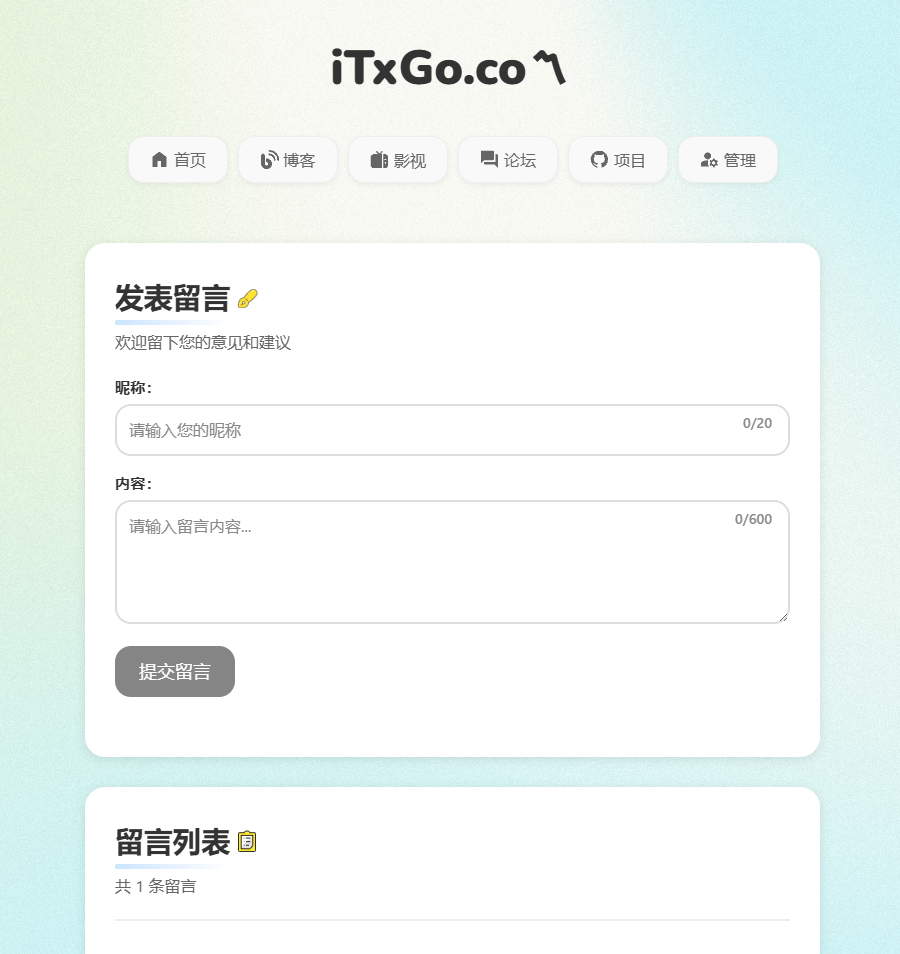 - 📝 发表留言(昵称 + 内容 + 时间记录)