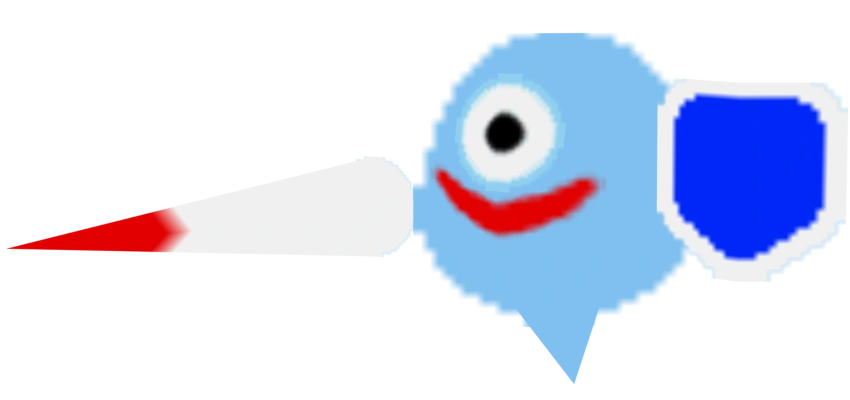 Ghost Knight is a one-eyed blue ghost that has a smiling mouth. He carries a white lance with a red point and a blue shield rimmed with white. Ghost Knight's circular eye is white with a large, black pupil.