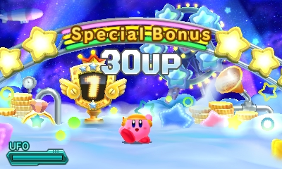 UFO Kirby completes the 30-UP trick in Kirby: Planet Robobot.