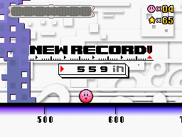 The Goal Game here is very similar to that in Kirby's Adventure. The main difference is that, as Kirby makes his ascent, he KOs foes and grabs items along the way. All platforms are clouds. Kirby can reach greater heights more easily if he is accompanied by one of his Animal Friends.