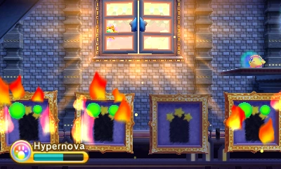 A few Nidoos disguise themselves as paintings with doors drawn on them, known as Art Nidoos. If Kirby tries to enter the door, the Nidoo will reveal itself and slam down on him. Using Hypernova to remove a curtain from a window lets light shine in, causing the Art Nidoos go up in flames and the real door to be revealed.