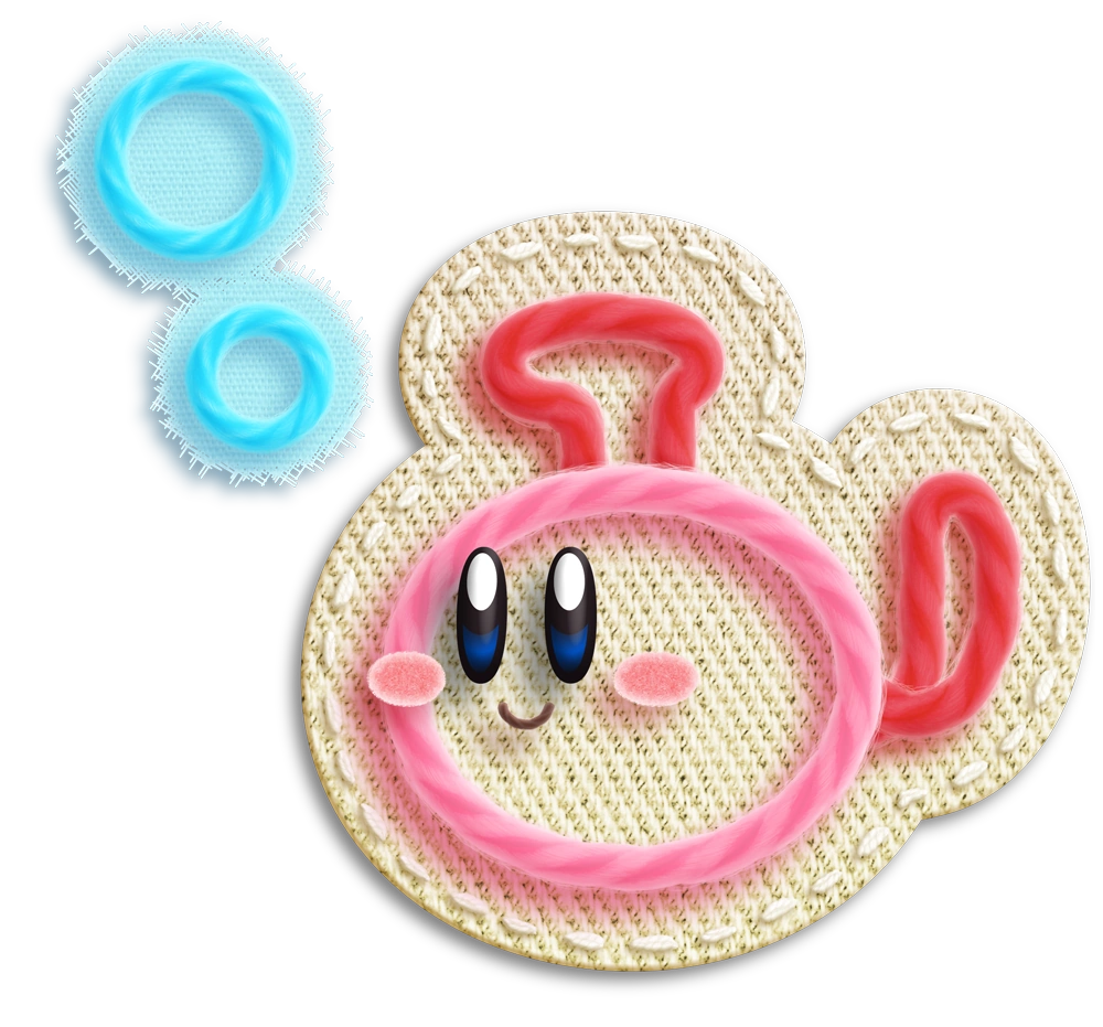 While in this form, Kirby and Prince Fluff can swim swiftly underwater by holding [画像:Kirby's Epic Yarn] or [画像:Kirby's Extra Epic Yarn]. This is the only form where Kirby retains full use of the Yarn Whip and the ability to throw yarn projectiles. The Yarn Whip's potential is increased and can now be tossed downwards as well, covering all 8 directions instead of just 5 on land. Kirby's Yarn Whip will be red instead of pink and the same goes for Fluff as his blue Yarn Whip will now be orange. Kirby and the Prince carries yarn balls on top of the submarine, just like while on land.