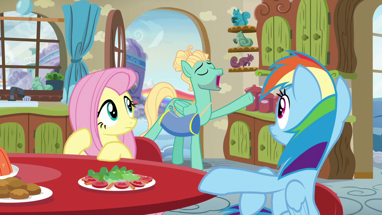 - Rainbow Dash: We just had lunch with Fluttershy's parents, and you'll never guess who showed up.