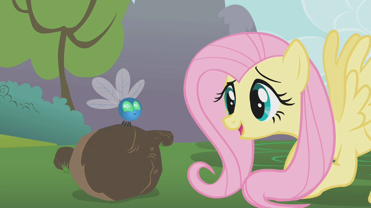 While gathering flowers near the Everfree Forest for an upcoming visit from Princess Celestia, Fluttershy encounters a small flying creature that appears to be hungry. She offers it a mushed apple, but it instead devours a bucketful of apples before settling into Fluttershy's mane. She takes a liking to the creature and walks off to show it to her friends.