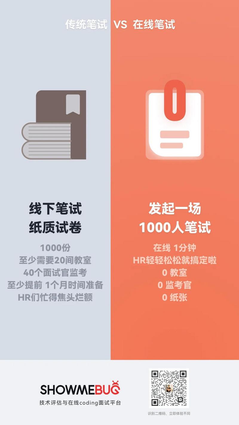 由于 [在线笔试](https://www.showmebug.com/write)的诸多好处,很多 HR 开始用在线笔试的方式来进行招聘初筛环节,不仅效率更高、成本更低,连跟业务部门的沟通也更顺畅了。