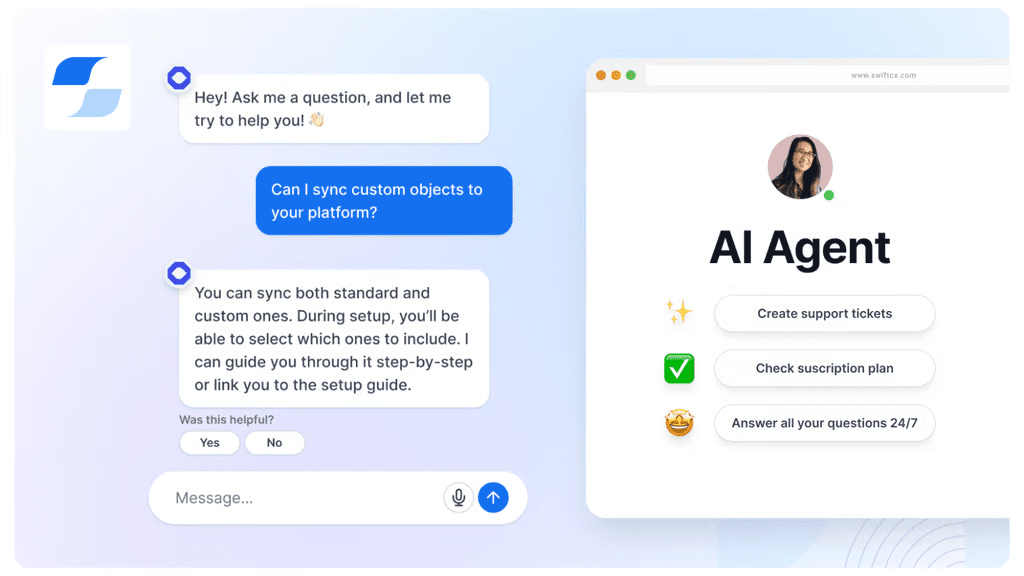 Automatic chat widget on your documentation: Each of your connected GitBook spaces will fetch the SwiftCX chat widget script and inject it in your published content.