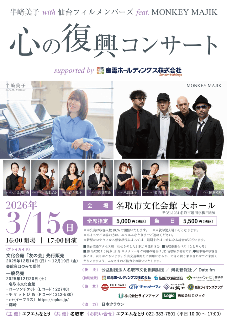 半﨑美子with仙台フィルメンバーズ心の復興コンサートfeat.MONKEY MAJIK supported by 産電ホールディングス(株)