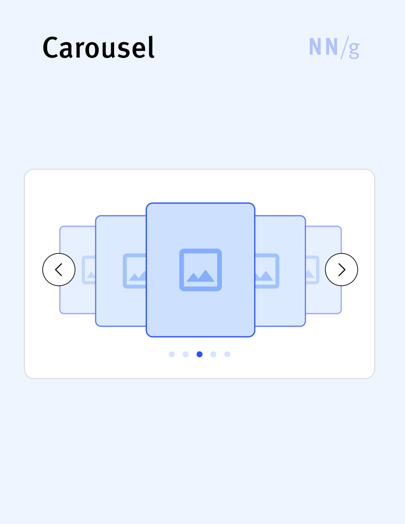 A design element that displays a rotating set of items (usually images). Users can navigate through the carousel items manually, by using arrows, buttons, or horizontal scrolling, or the carousel can rotate automatically through the images in its set. Carousels can save screen space as they can fit many items in a small area