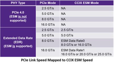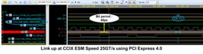 Per the CCIX Consortium, data transfer can be done at a maximum speed of 25GT/s, increasing the PCIe 4.0 maximum speed, which is otherwise limited to 16 GT/s. CCIX introduced a feature called Extended Speed Mode (ESM) to achieve 20 GT/s and 25 GT/s link speed. PCIe components supporting this mode must enhance the physical layer to achieve higher speed; however, no enhancement is required in ordered sets fields except EIEOS and Control SKP OS format change. To achieve the CCIX ESM speed, below steps are performed maintaining compatibility between PCIe and CCIX protocols.