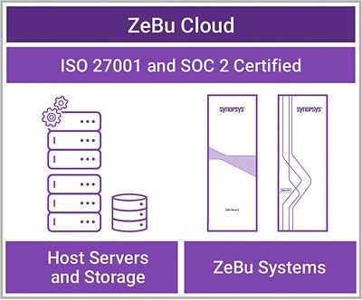 Robust security: ZeBu Cloud adheres to strict security protocols and is compliant with industry standards like ISO 27001 and SOC 2 Type 1 , ensuring the protection of sensitive design data.