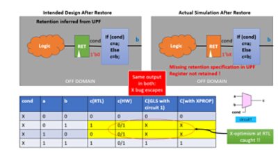 Resolution: By identifying the X-propagation issue early in the verification process, the design team can modify the power gating logic and add proper reset mechanisms to ensure a clean power-up sequence. In this case the missing retention register definition can be added in the UPF. This prevents X-values from affecting the processor's behavior during wake-up, enhancing the overall reliability of the device.