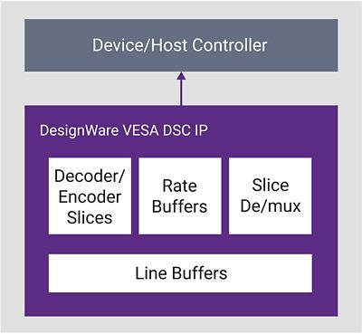 Synopsys VESA Display Stream Compression (DSC) IP, including encoder and decoder, delivers high-bandwidth, small area, and low-power image compression for mobile, AR/VR, and automotive SoCs. The IP delivers a full display solution by working seamlessly with Synopsys HDMI 2.1, DisplayPort, and MIPI DSI IP. For immersive viewing experiences, the IP enables visually lossless data transmission and minimizes latency. Compliant with the latest VESA DSC 1.1 and 1.2a standards, the Synopsys IP enables displays to deliver the required 120Hz refresh rate, high dynamic range, and wide color gamut for up to 10K content.
